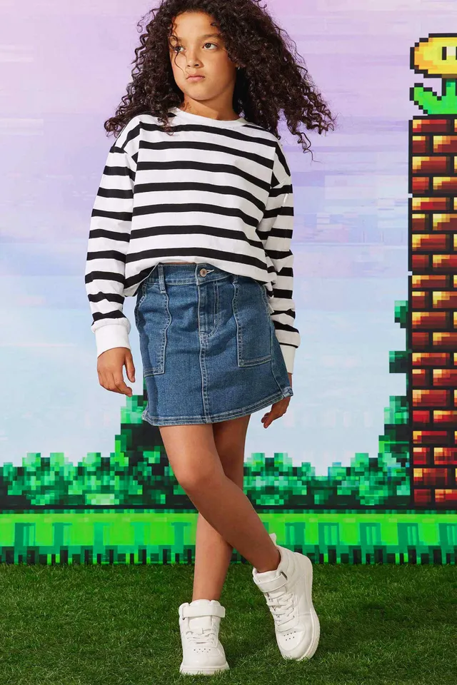 Exclusive piece from our Ardene Kids collection. Denim mini skirt for kids. Button and fly closure Patch pockets 68% cotton, 30% polyester, 2% spandex Model in Blue skirt is wearing size 6Model in Black skirt is wearing size 7 | Ardene Denim Carpenter Skirt in Med. Blue | Size 6 | Polyester/Spandex/Cotton