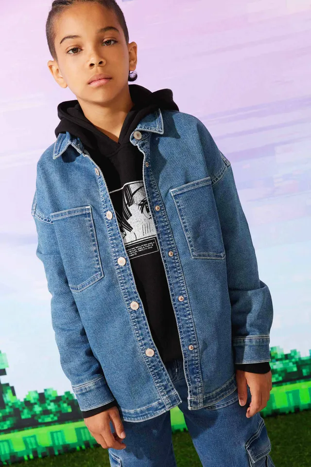 Exclusive piece from our Ardene Kids collection. Jean overshirt for kids. Brest pockets Buttons down the front 68% cotton, 30% polyester, 2% spandex Models in Blue shacket are wearing size XS and LModels in Black shacket are wearing sizes S and L | Ardene Denim Shacket in Med. Blue | Size XS | Polyester/Spandex/Cotton