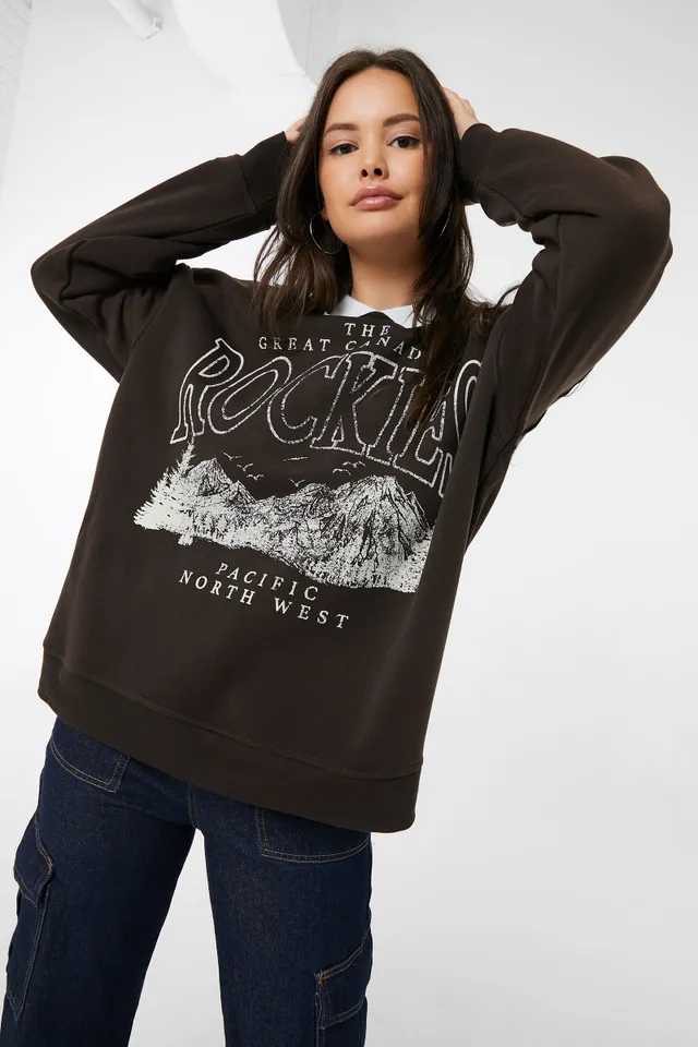 Ardene Graphic Polo Sweatshirt In | Size | Polyester | Fleece-Lined