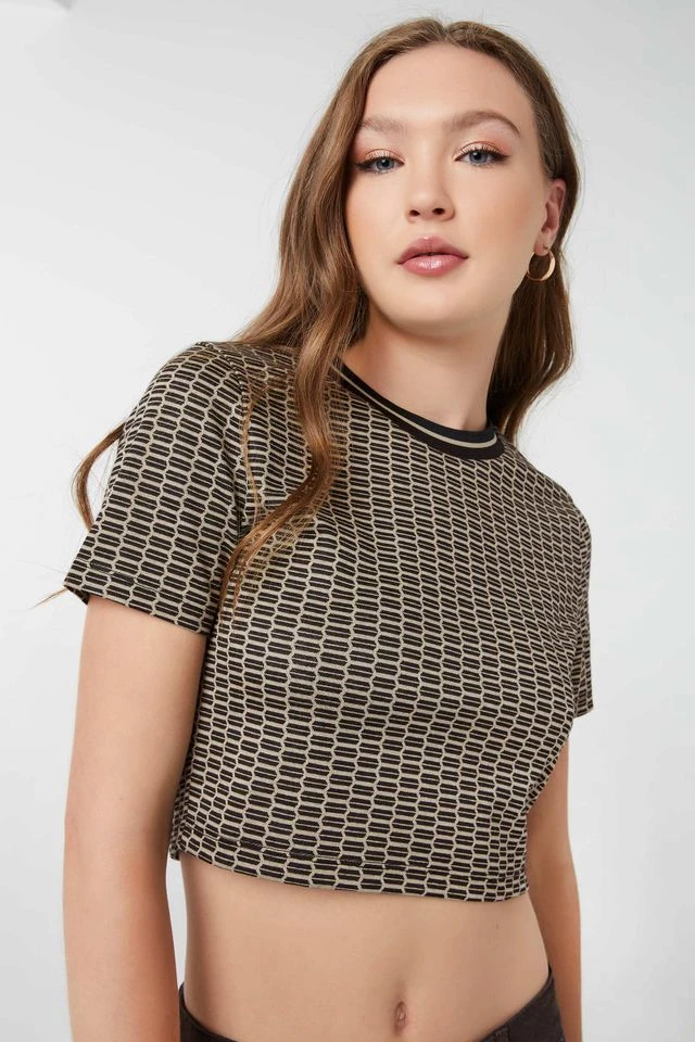 Ardene Ultra-Cropped Jacquard Tee In Black | Size | Polyester/Elastane/Viscose