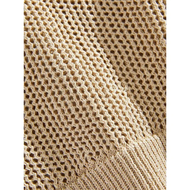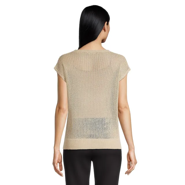 Cotton-Linen Short-Sleeve Open-Knit Sweater