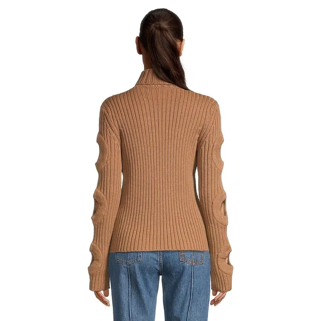 JW Anderson Cutout-Sleeve Merino Wool Turtleneck Sweater