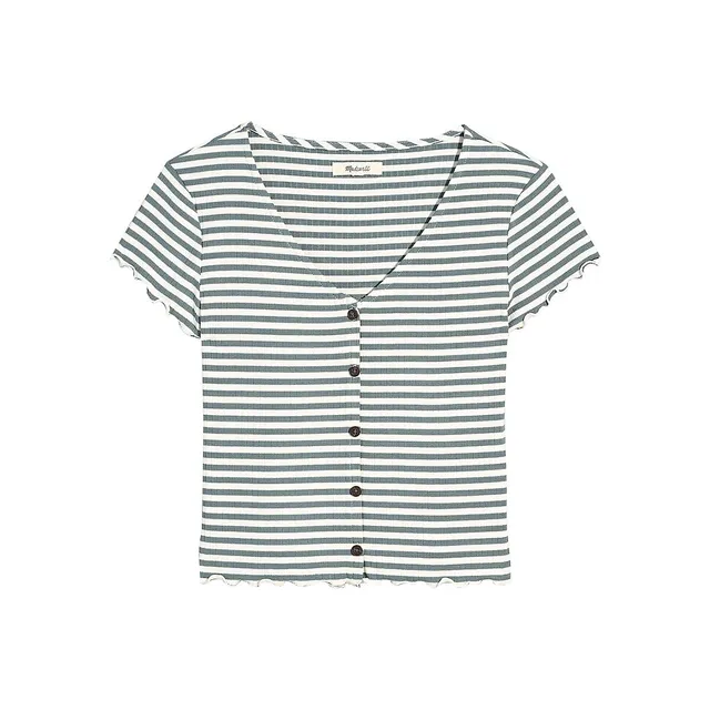 Madewell Button-Front V-Neck Stripe T-Shirt