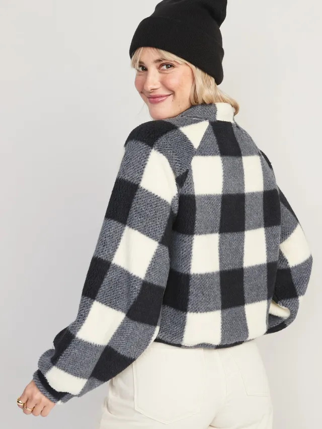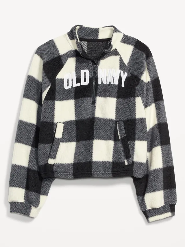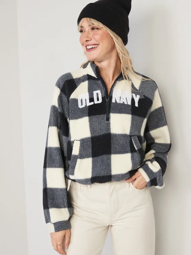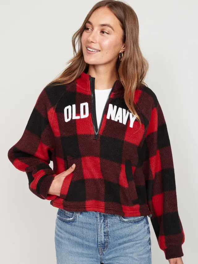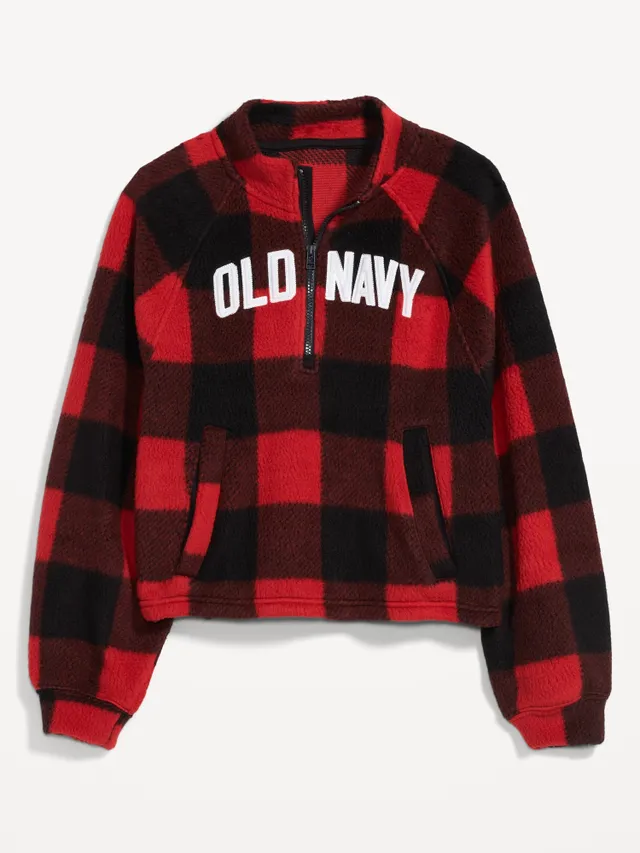 Old Navy Oversized Buffalo Plaid Logo Sherpa Quarter-Zip Sweatshirt For Women
