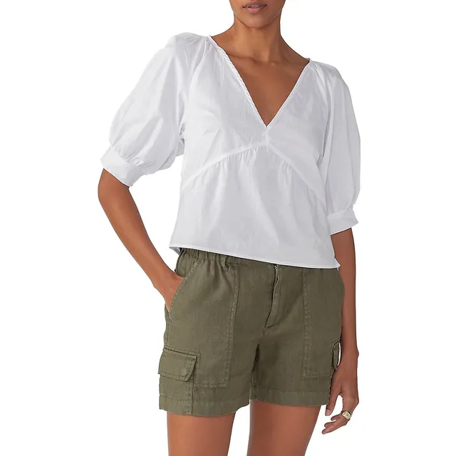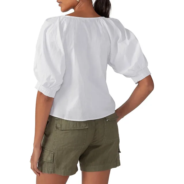 Sanctuary V-Neck Puff-Sleeve Poplin Top